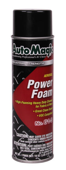Power Foamâ„¢ Aerosol contains ammonia and special foaming agents to instantly loosen and remove grease and dirt from most surfaces. Excellent for use on velour, carpet, vinyl and plastic surfaces.